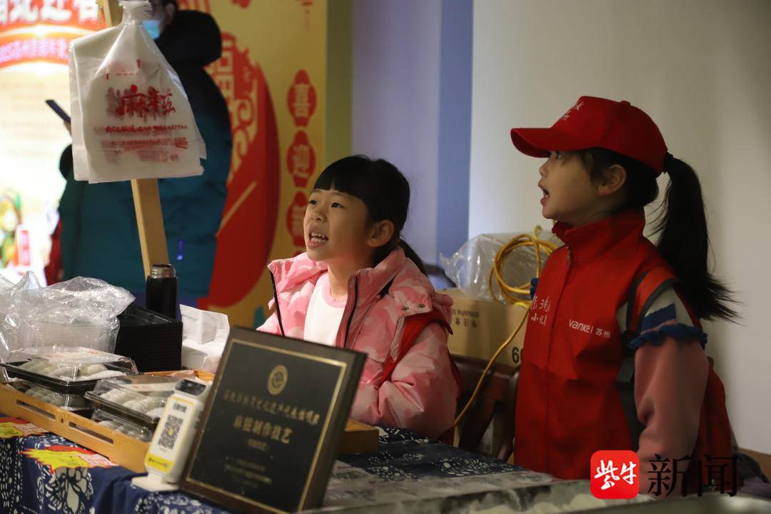 “好吃的麻糍快来买呀!”苏州市沧浪新城第四实验小学校二(6)班的邵可慧和付涵琳在摊位上大声吆喝着,不停向顾客介绍着豆沙馅和芝麻馅的麻糍。“今天参加活动很开心,卖东西很好玩,一开始感觉挺紧张的,卖着卖着就放松了,之后还想参与这样的活动,”邵可慧说。